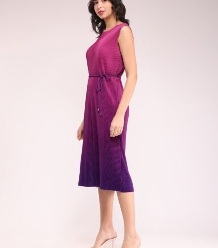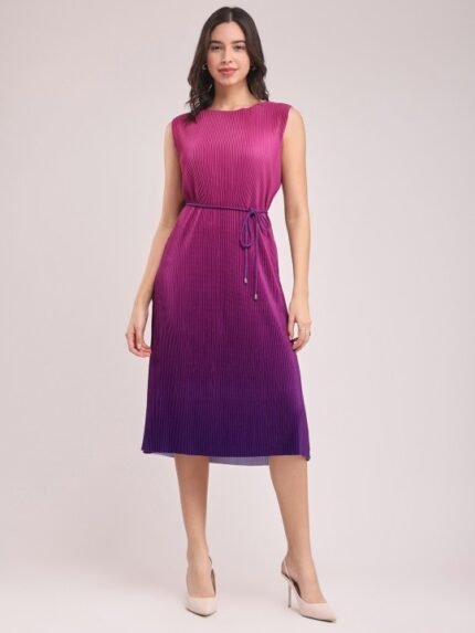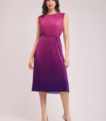 A-Line Ombre Pleated Midi Dress