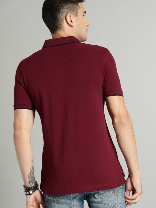 Men Maroon Solid Polo Collar T-shirt