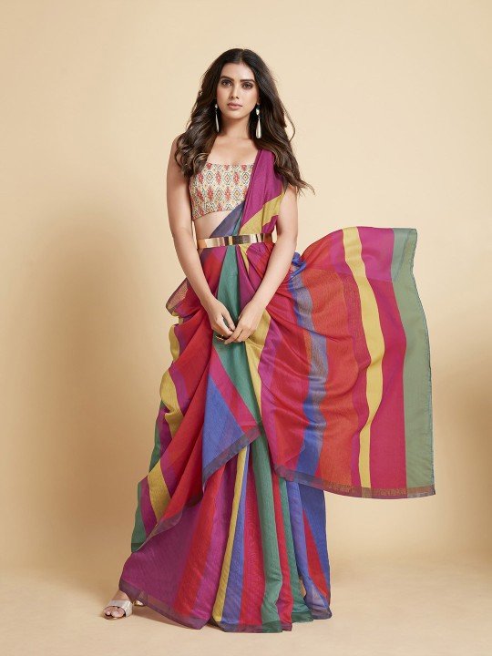 Multicolour Striped Saree