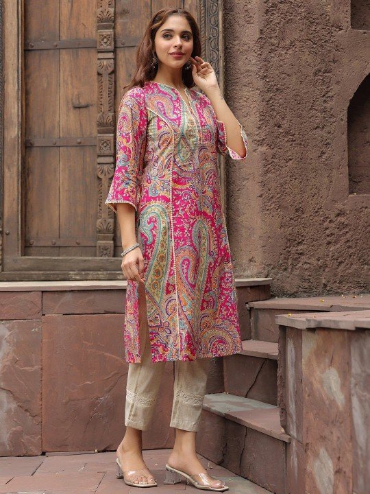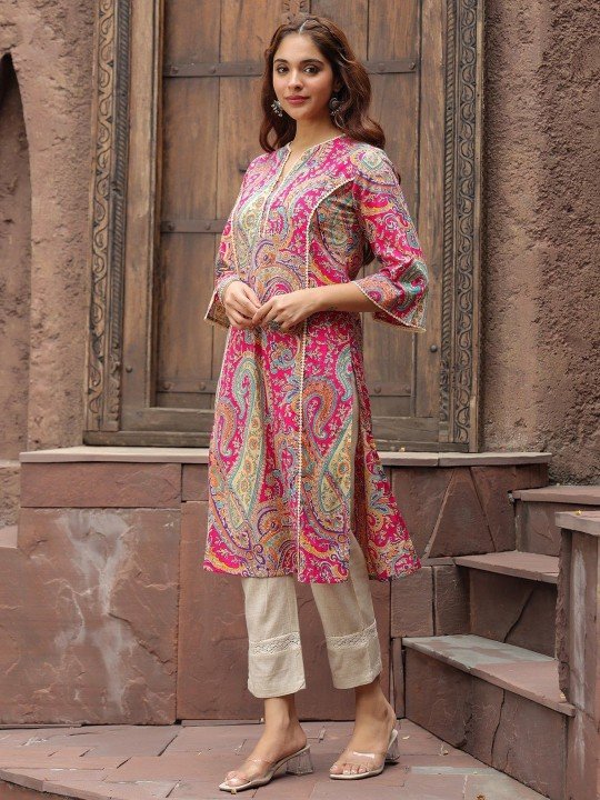 Paisley Printed Notch Neck Panelled A-Line Kurta