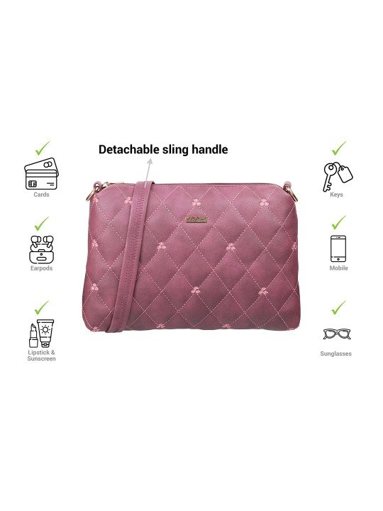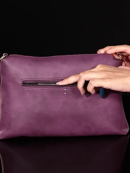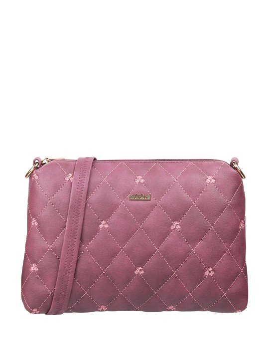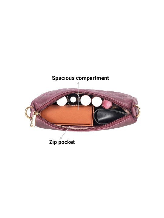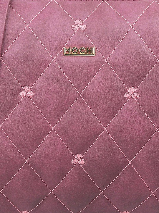Purple Textured Structured Shoulder Bag with Quilted